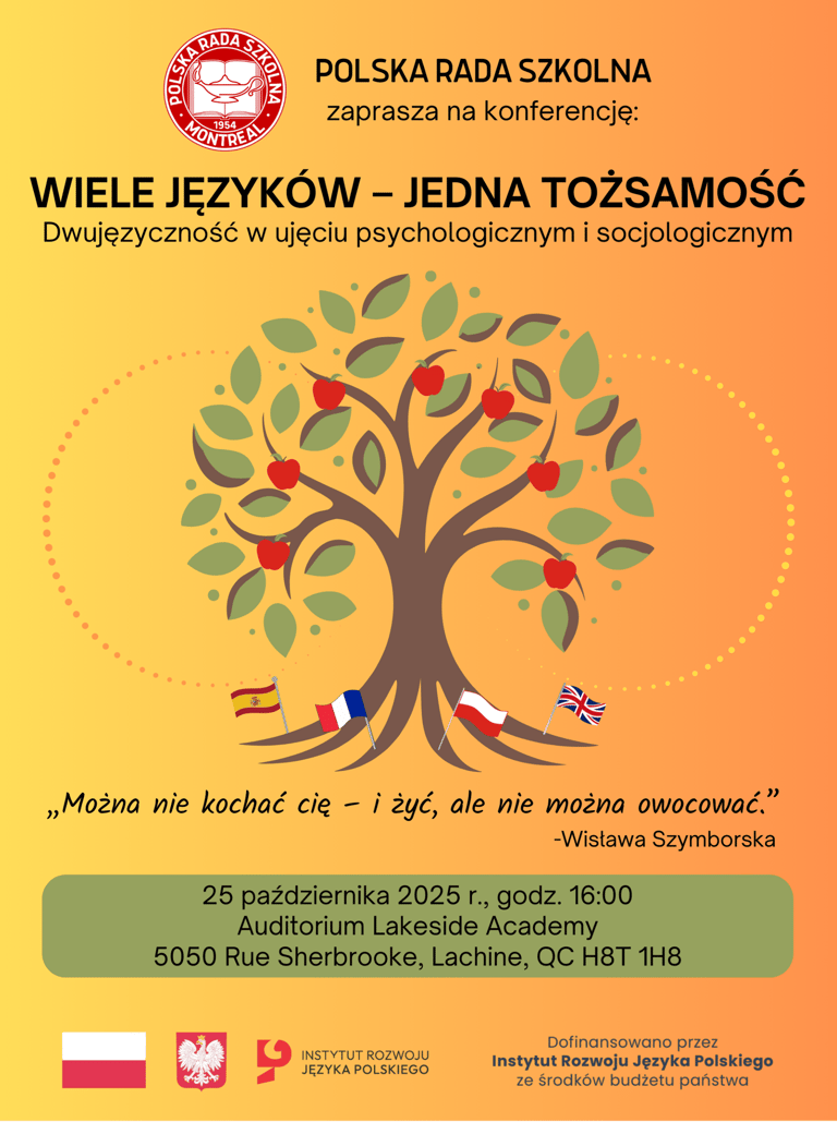 W sobotę, 25 października, odbyła się konferencja metodyczna „Wiele języków – jedna tożsamość”, poświęcona tematowi dwujęzyczności. Została ona zorganizowana przez Polską Radę Szkolną, a dofinansowana, za pośrednictwem Fundacji Pomoc Polakom na Wschodzie im.Jana Olszewskiego, przez Instytut Rozwoju Języka Polskiego im. św. Maksymiliana Marii Kolbego, ze środków pochodzących z budżetu państwa.
